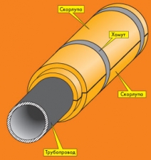 ППУ скорлупа крепится на трубопроводе при помощи хомутов